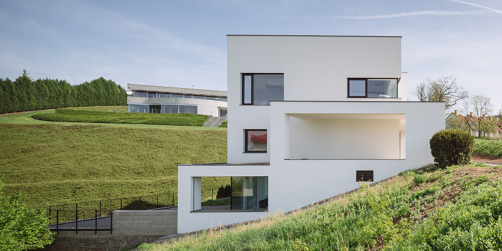 Do projektu jsme vstoupili v průběhu hrubé stavby. Majitelům jsme pomohli dílo dotáhnout k oboustranné spokojenosti. Projekt jsme pozměnili podle svého rukopisu a de facto jsme jej adoptovali za vlastní. Vznikla tak bílá městská vila s bezrámovými okny a výhledy na město.